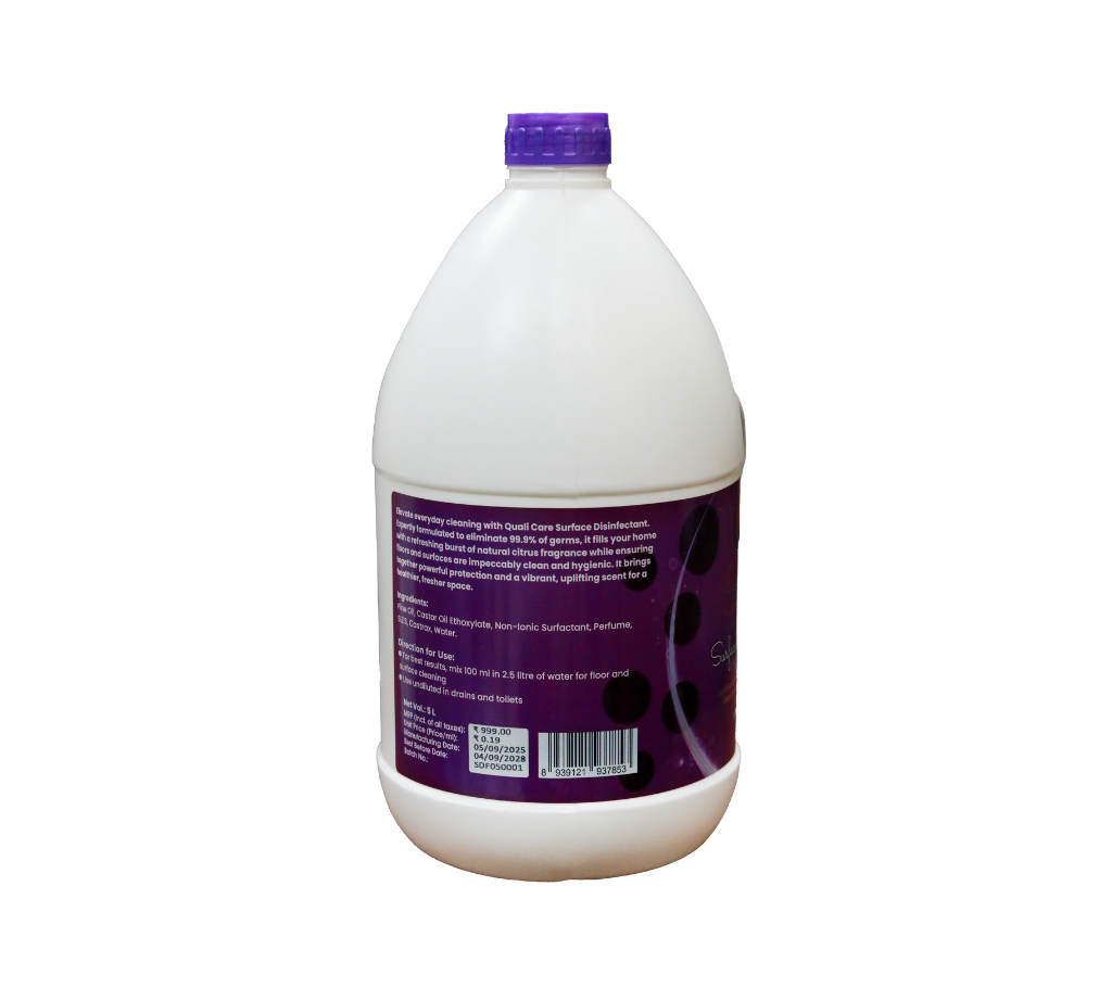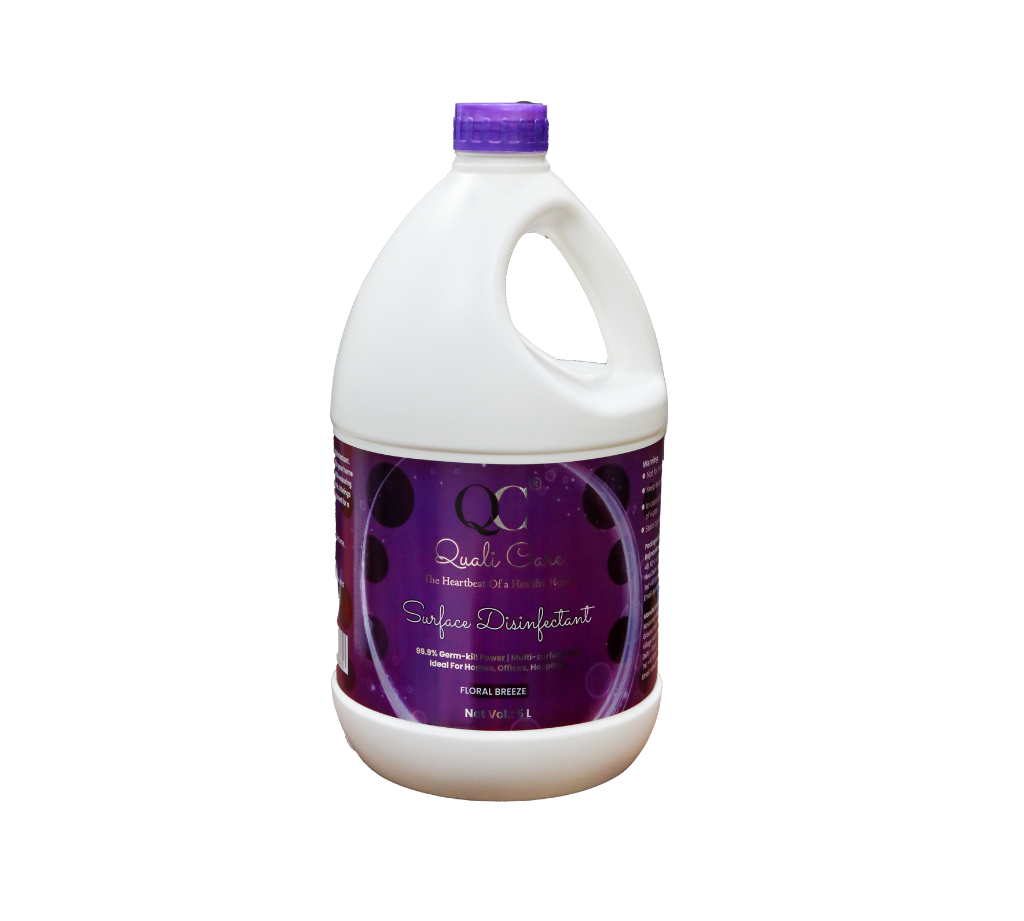 Quali Care Floral Breeze Surface Disinfectant – 5 Litre is a high-performance disinfecting solution designed to meet the demanding hygiene standards of corporate offices, hotels, commercial spaces, healthcare facilities, and modern homes. Its advanced formula effectively eliminates germs, bacteria, and everyday contaminants while removing dirt and grime from frequently touched surfaces.